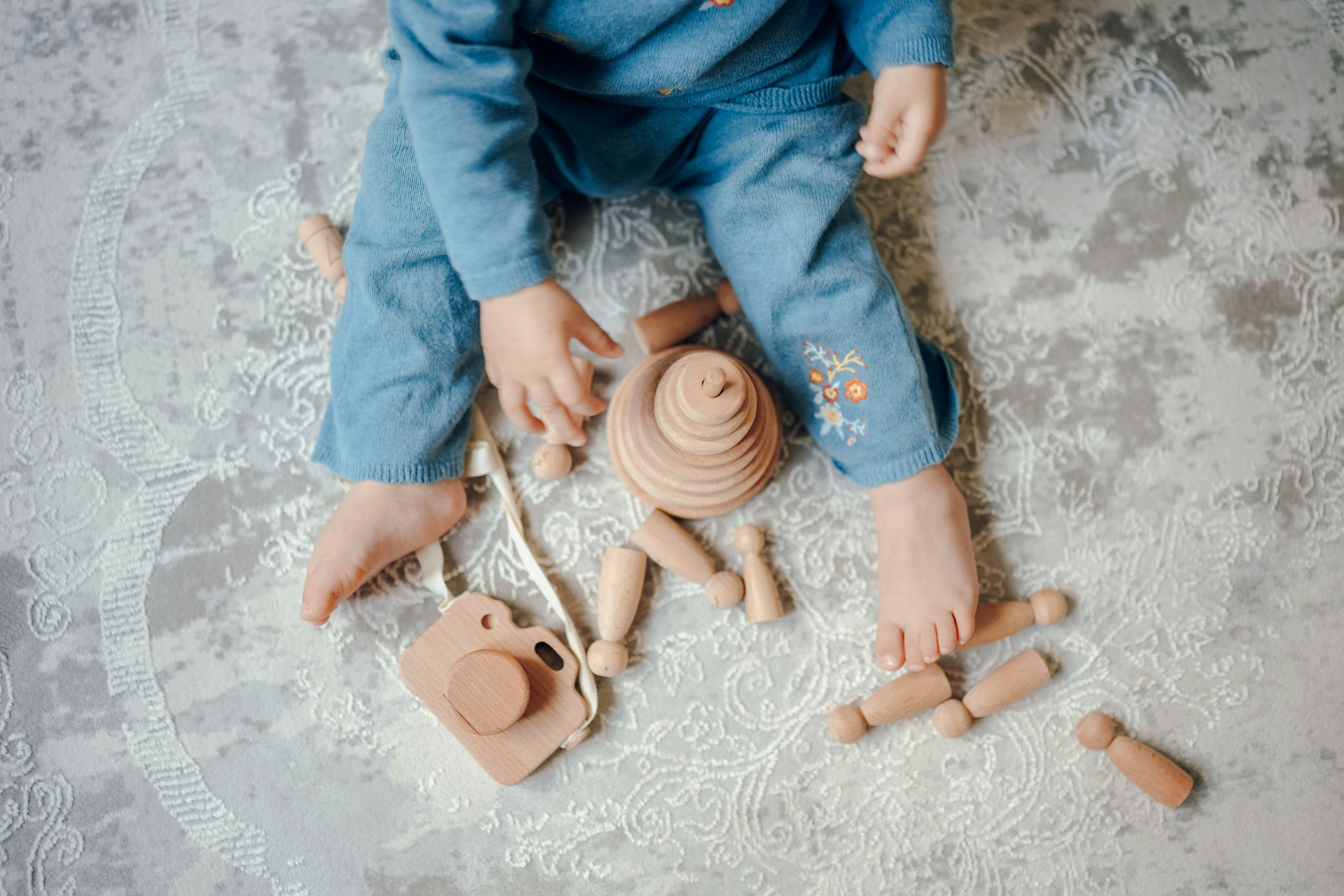 - Knappespil og snørebåndsbrætter – legetøj, der efterligner dagligdags færdigheder, hjælper barnet med at mestre praktiske opgaver.